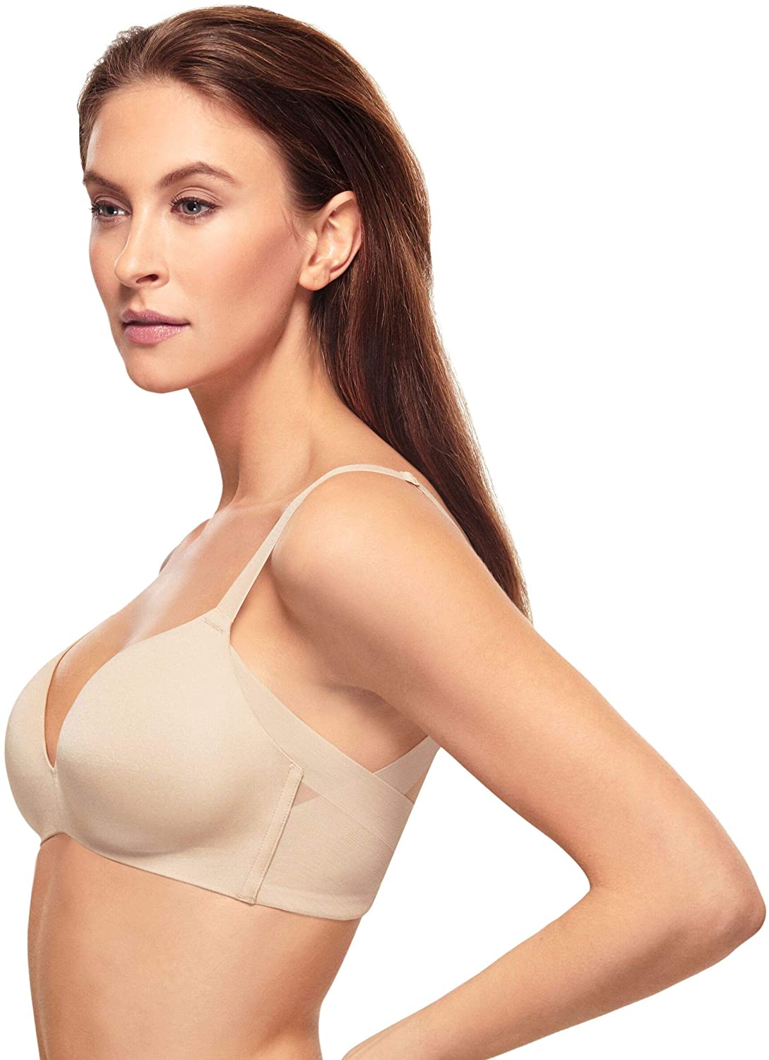 Molded cups give a pretty, natural shape in this wireless bra, and the mesh leotard back prevents bulge.